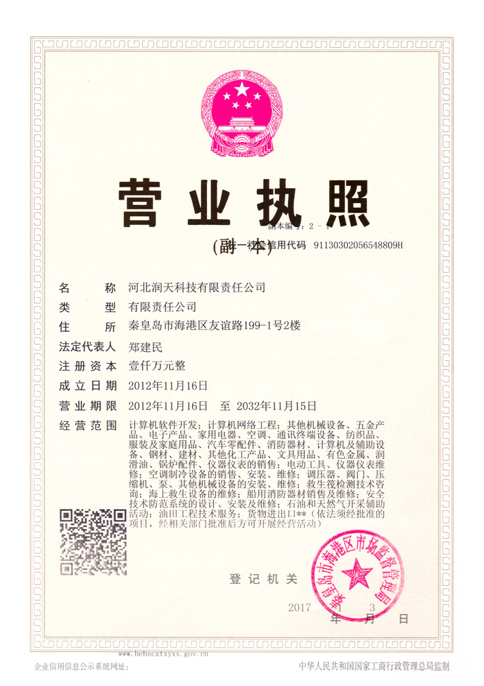 河北潤天科技有限責(zé)任公司始于2000年成立,公司以工業(yè)、應(yīng)急救援產(chǎn)品貿(mào)易為基礎(chǔ),主營安全設(shè)備、安全裝備、儀器儀表的銷售、維修及檢驗(yàn)檢測;公司通過了CMA、CNAS實(shí)驗(yàn)室認(rèn)證及特種設(shè)備檢驗(yàn)檢測機(jī)構(gòu)核準(zhǔn)以...[更多]
